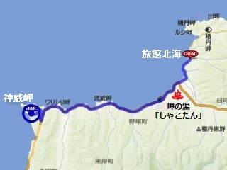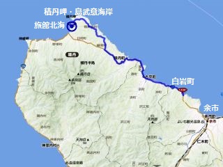 南の江差から積丹半島外周を経て小樽に至る