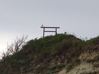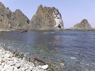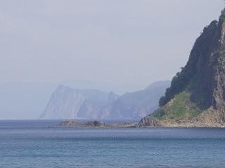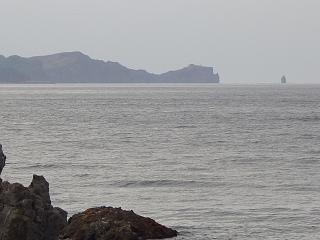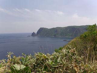 西を見返すと、遠くに「神威岩」が見える
