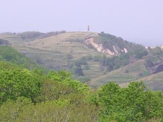 右手の丘の上に見えるのは