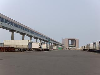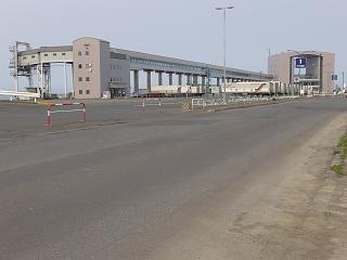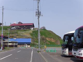 手前に食堂と大駐車場が見える