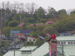 山の方に桜が咲いている