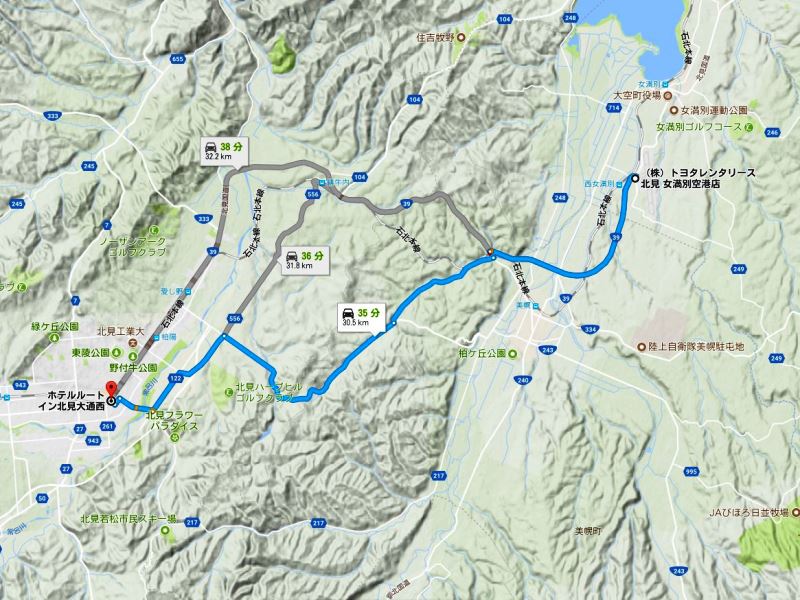 午後の便で女満別空港へ、レンタカーを借り北見泊