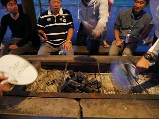「早く赤くなれ〜っ!」と、 みんな団扇で扇ぐ