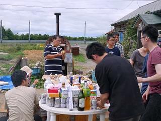 JRで蘭越へ、「収穫祭」に合流して夜BQ