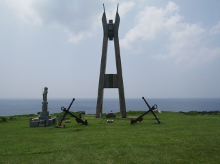 ぼんやりした水平線の上下にどんよりした空と海でした。