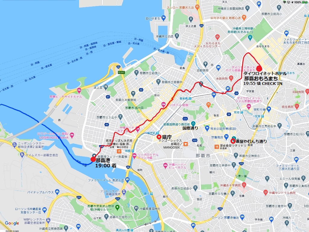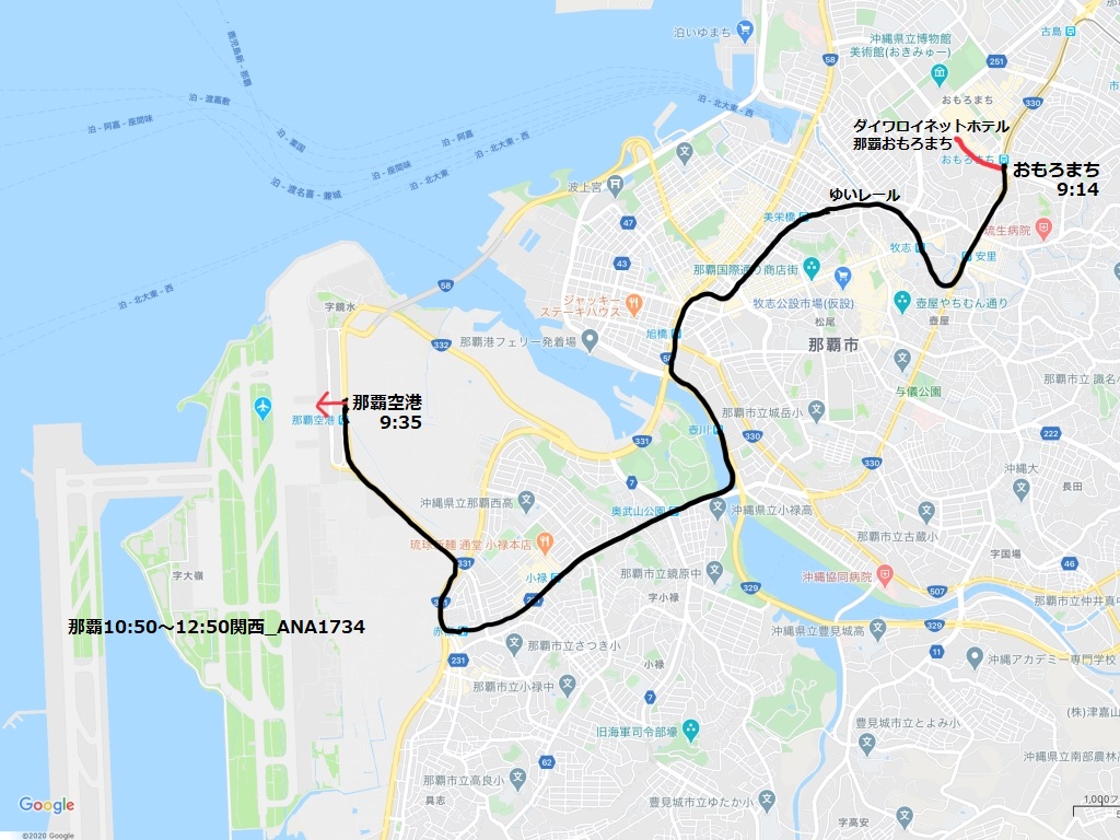 ホテルから「ゆいレール」の「おもろまち駅」までは