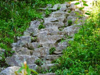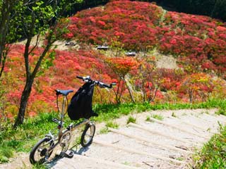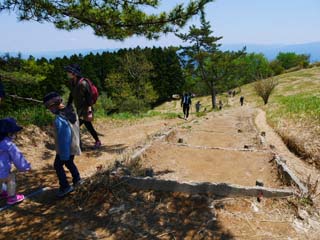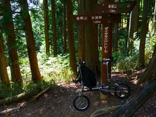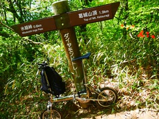 自転車を抱えて登山道を水越峠まで抜けた後、