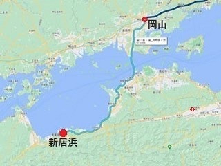 新幹線、JR瀬戸内大橋線を乗り継いで新居浜へ、