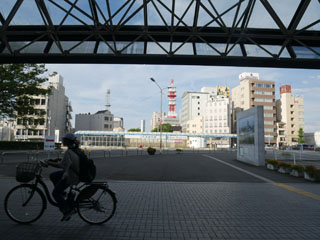 少し行って左折すると正面の広島駅は大規模工事中・・・
