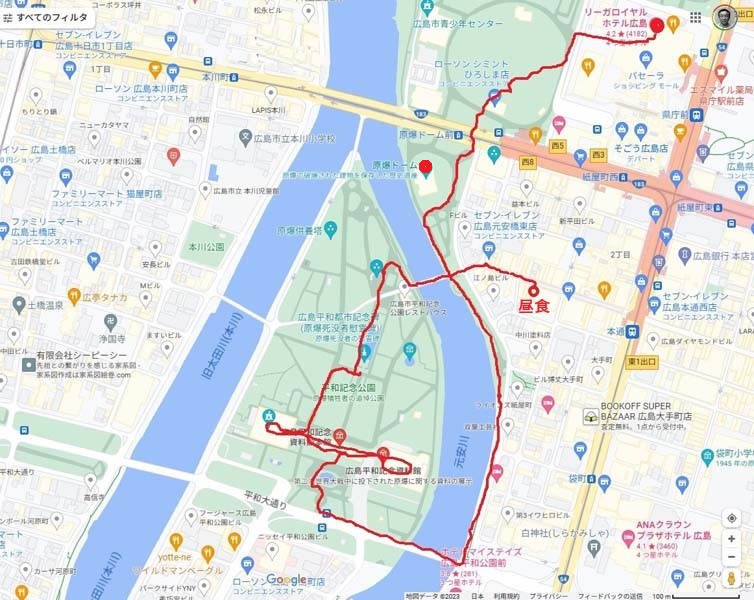徒歩で記念公園とその周辺を散策し、