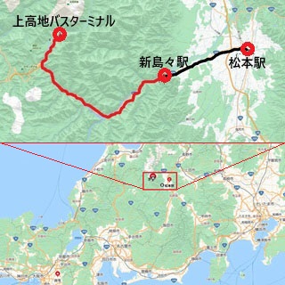 新島々駅でバスに乗り換える