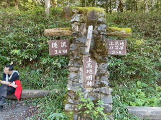 標識には「上高地バス停まで3q」とあるも、