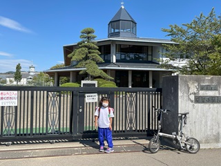 市立開智小学校校門前で!