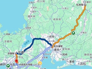 午後8時頃に松本着